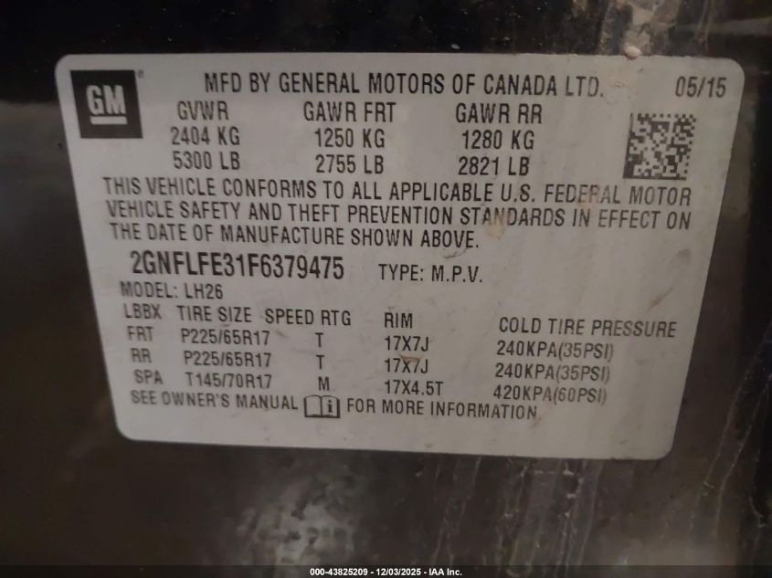 2015 CHEVROLET EQUINOX 2015 року Бензин, 3.6, Полный привод, vin - 2GNFLFE31F6379475 из США