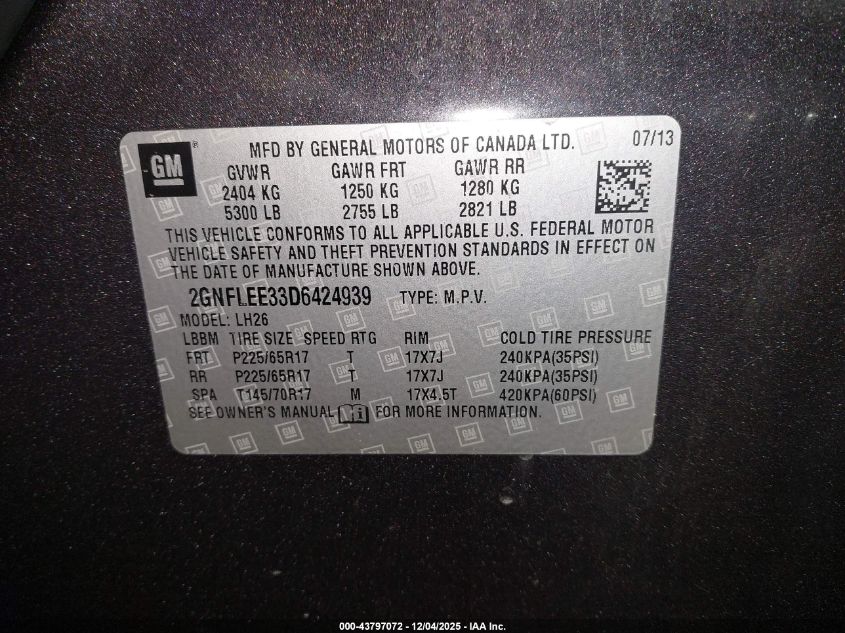 2013 CHEVROLET EQUINOX 2013 року Бензин, 3.6, Полный привод, vin - 2GNFLEE33D6424939 из США