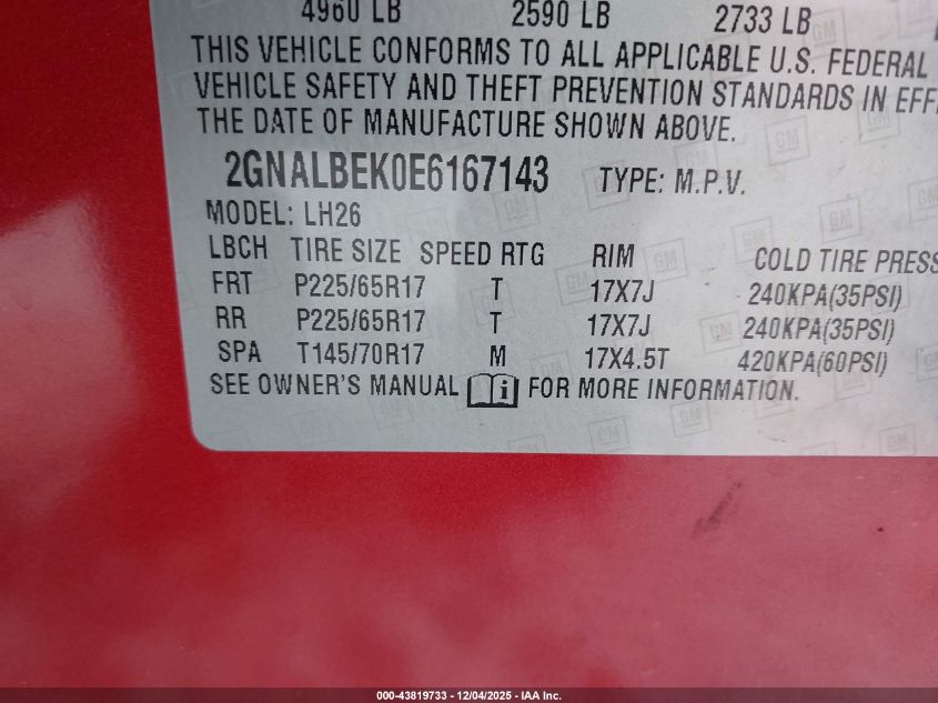 Цвет КрасныйЦилиндры 4Привод Передний приводVIN 2GNALBEK0E6167143Состояние Заводится и едет (проверено)Повреждения Левая сторона AutoRIA