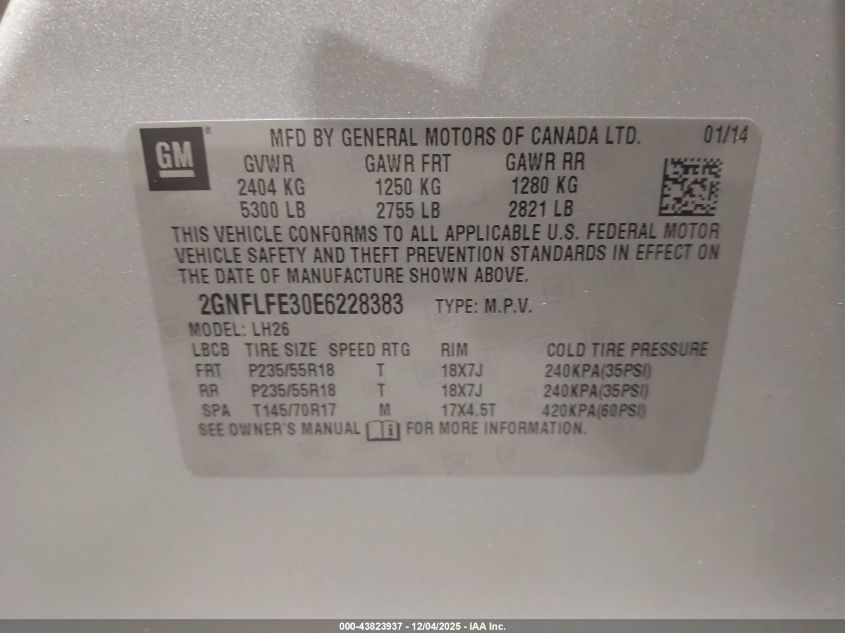 Цвет СерыйЦилиндры 6Привод Полный приводVIN 2GNFLFE30E6228383Состояние Заводится и едет (проверено)Повреждения Передняя левая AutoRIA