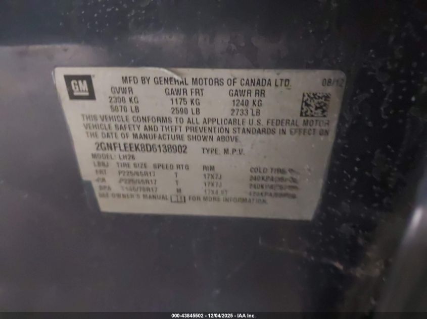 2013 CHEVROLET EQUINOX 2013 року Бензин, 2.4, Полный привод, vin - 2GNFLEEK8D6138902 из США