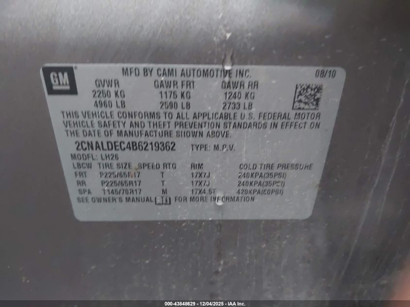 2011 CHEVROLET EQUINOX 2011 року Бензин, 2.4, Передний привод, vin - 2CNALDEC4B6219362 из США