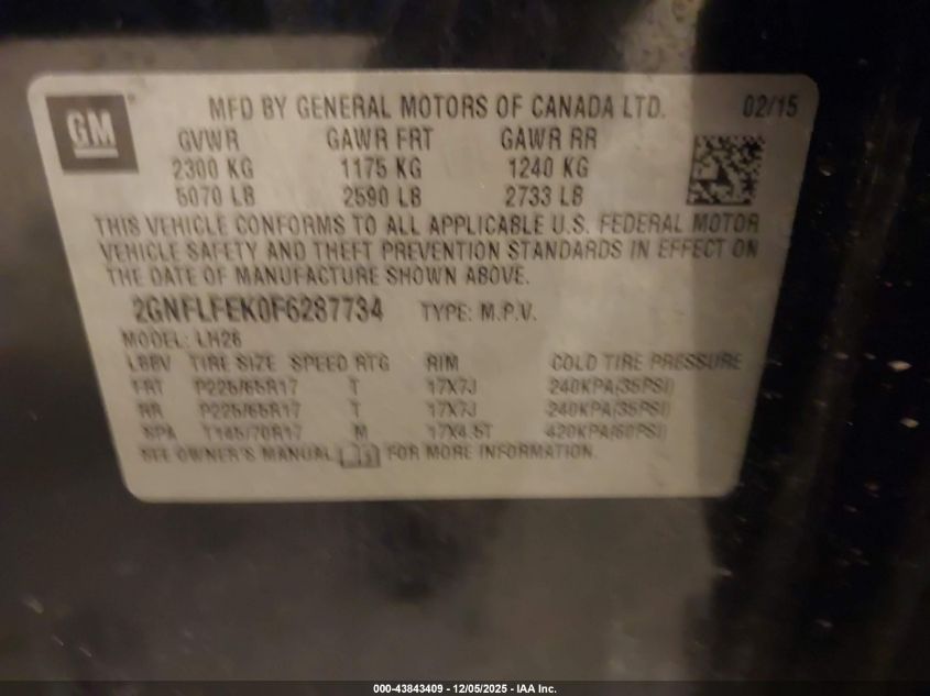 2015 CHEVROLET EQUINOX 2015 року Бензин, 2.4, Полный привод, vin - 2GNFLFEK0F6287734 из США