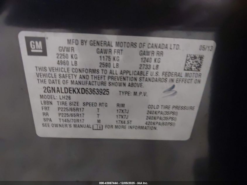 2013 CHEVROLET EQUINOX 2013 року Бензин, 2.4, Передний привод, vin - 2GNALDEKXD6363925 из США