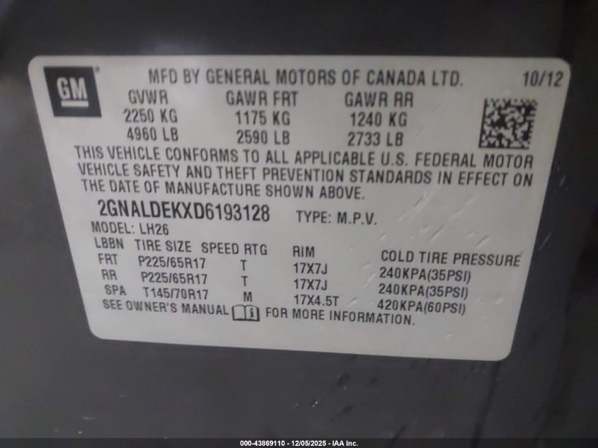 2013 CHEVROLET EQUINOX 2013 року Бензин, 2.4, Передний привод, vin - 2GNALDEKXD6193128 из США