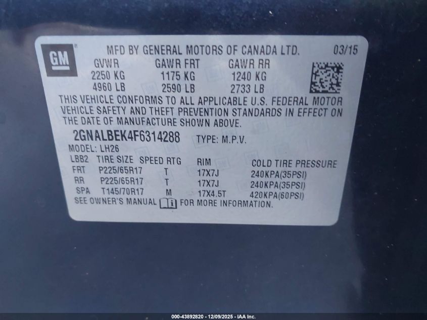 2015 CHEVROLET EQUINOX LT