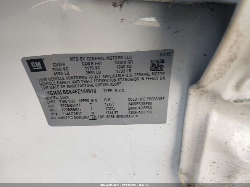 2015 CHEVROLET EQUINOX 2015 року Бензин, 2.4, Передний привод, vin - 1GNALBEK4FZ144910 из США