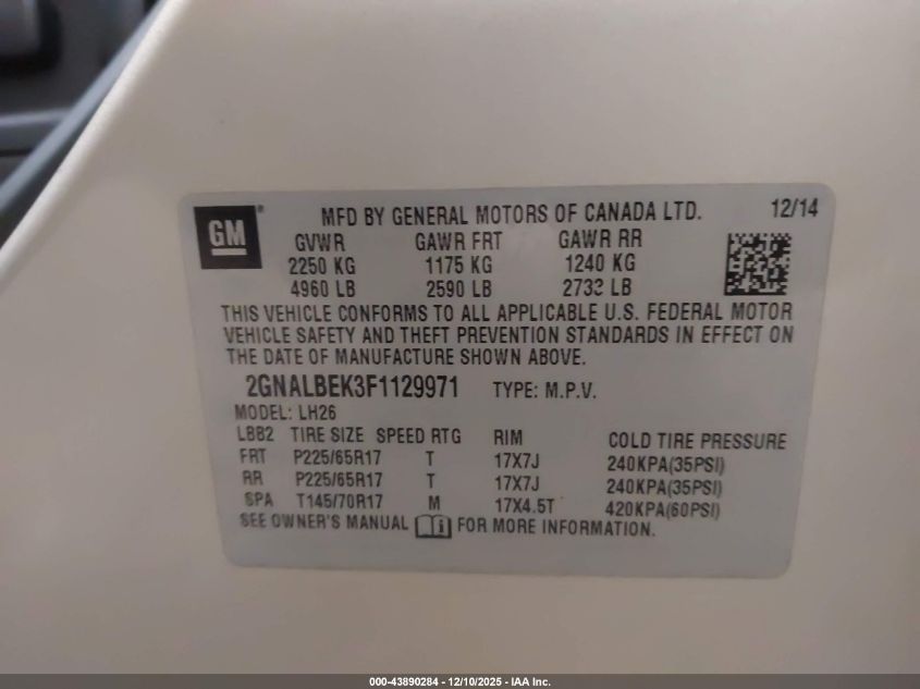 2015 CHEVROLET EQUINOX LT