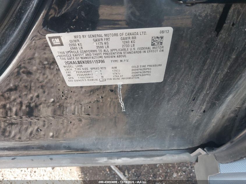 2014 CHEVROLET EQUINOX 2014 року Бензин, 2.4, Передний привод, vin - 2GNALBEK0E6115706 из США