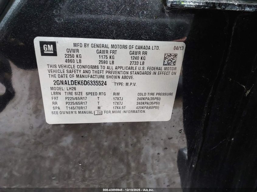 2013 CHEVROLET EQUINOX 2013 року Бензин, 2.4, Передний привод, vin - 2GNALDEK6D6335524 из США