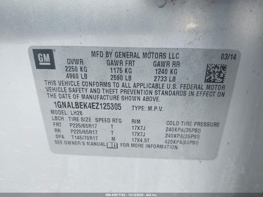2014 CHEVROLET EQUINOX 2014 року Бензин, 2.4, Передний привод, vin - 1GNALBEK4EZ125305 из США