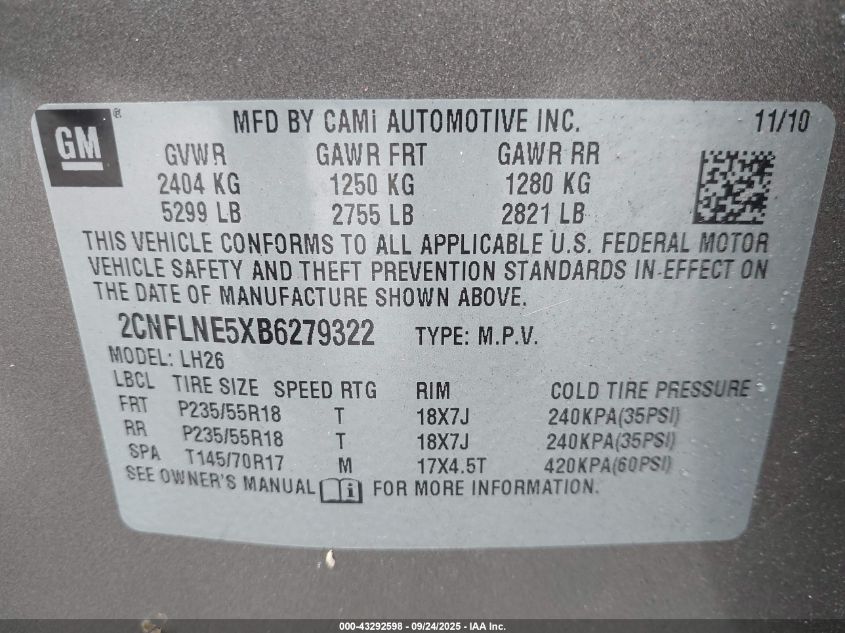 2011 CHEVROLET EQUINOX LT
