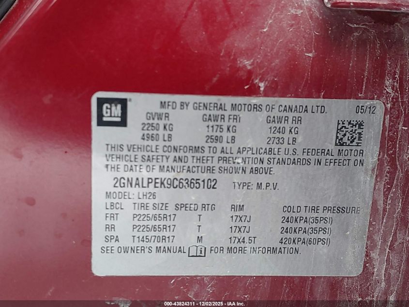 2012 CHEVROLET EQUINOX 2012 року Бензин, 2.4, Передний привод, vin - 2GNALPEK9C6365102 из США