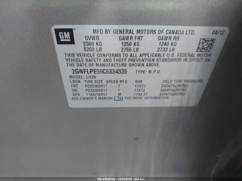 Цвет СерыйЦилиндры 6Привод Передний приводVIN 2GNFLPE59C6334335Состояние СтационарноПовреждения Передняя левая AutoRIA