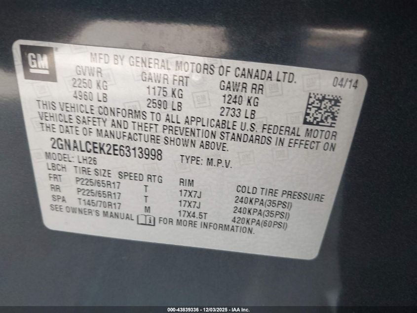 2014 CHEVROLET EQUINOX 2014 року Бензин, 2.4, Передний привод, vin - 2GNALCEK2E6313998 из США