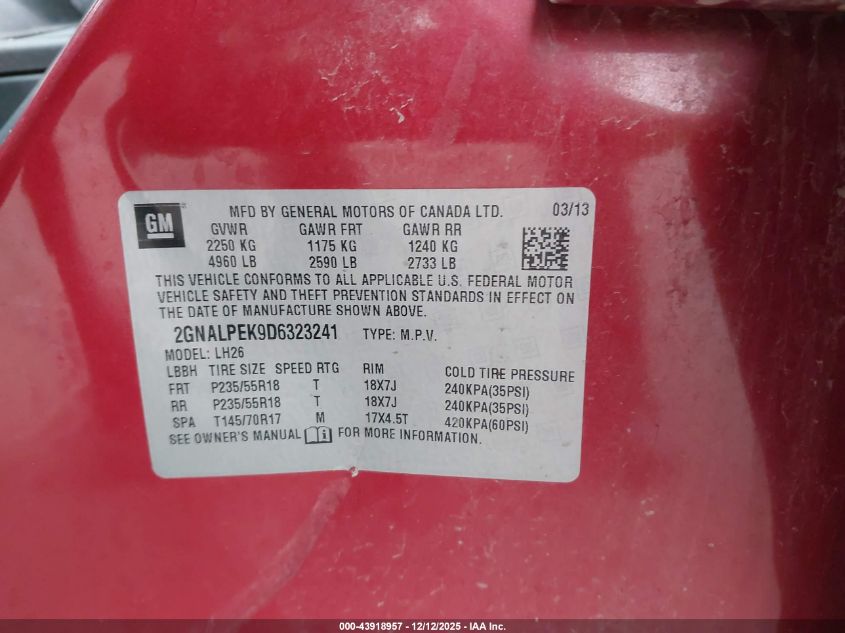 Цвет КрасныйЦилиндры 4Привод Передний приводVIN 2GNALPEK9D6323241Состояние СтационарноПовреждения Передняя или задняя AutoRIA