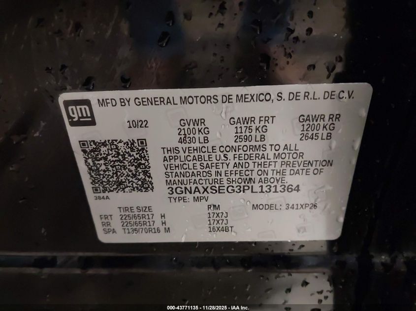 2023 CHEVROLET EQUINOX 2023 року Бензин, 1.5, Полный привод, vin - 3GNAXSEG3PL131364 из США