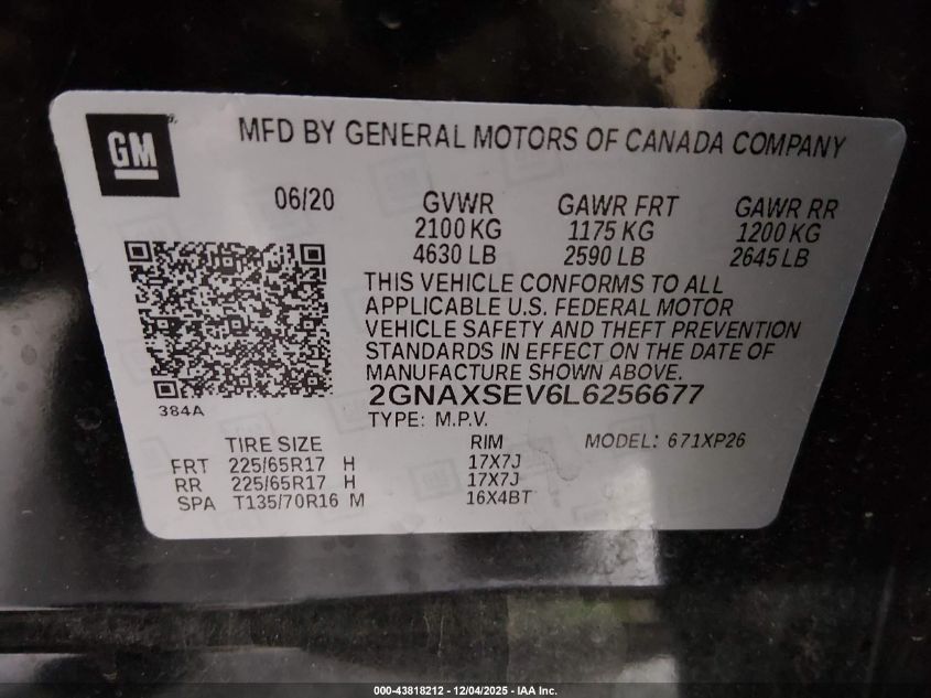 2020 CHEVROLET EQUINOX 2020 року Бензин, 1.5, Полный привод, vin - 2GNAXSEV6L6256677 из США