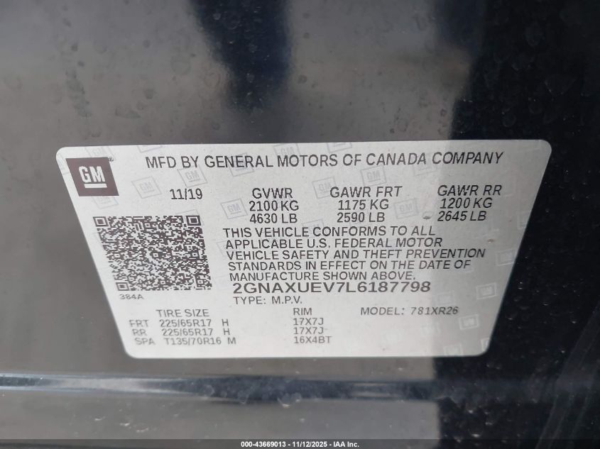 Цвет ЧерныйЦилиндры 4Привод Полный приводVIN 2GNAXUEV7L6187798Состояние Заводится и едет (проверено)Повреждения Передняя или задняяДата аукциона 2025-12-11 AutoRIA