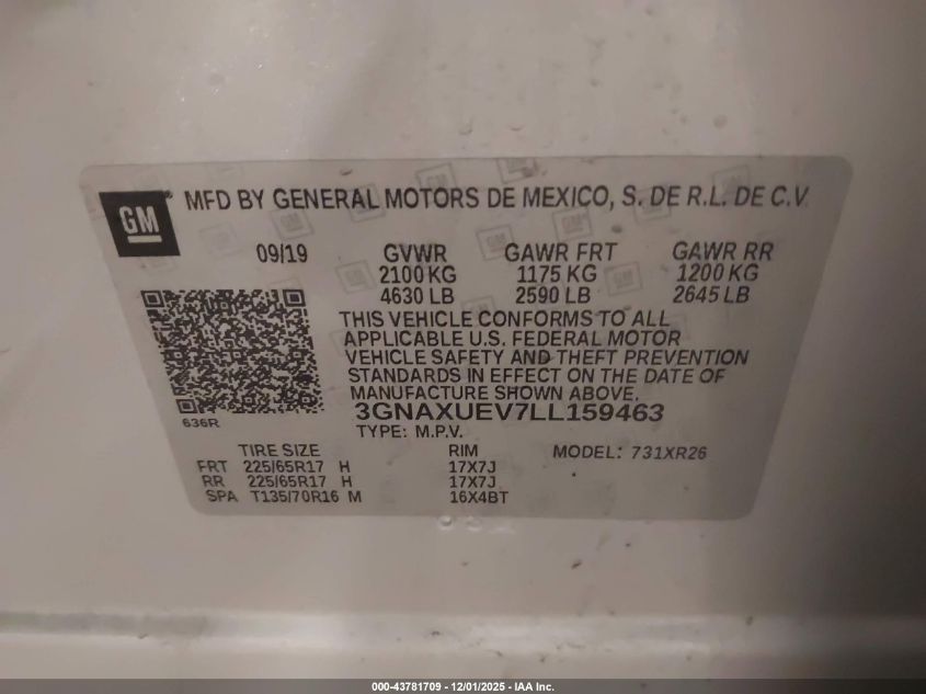 2020 CHEVROLET EQUINOX 2020 року Бензин, 1.5, Полный привод, vin - 3GNAXUEV7LL159463 из США