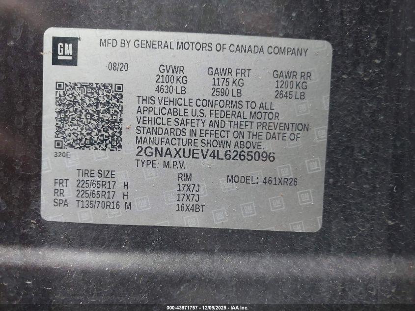 2020 CHEVROLET EQUINOX 2020 року Бензин, 1.5, Полный привод, vin - 2GNAXUEV4L6265096 из США