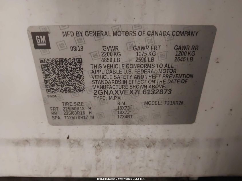 2020 CHEVROLET EQUINOX 2020 року Бензин, 2.0, Полный привод, vin - 2GNAXVEX7L6132873 из США