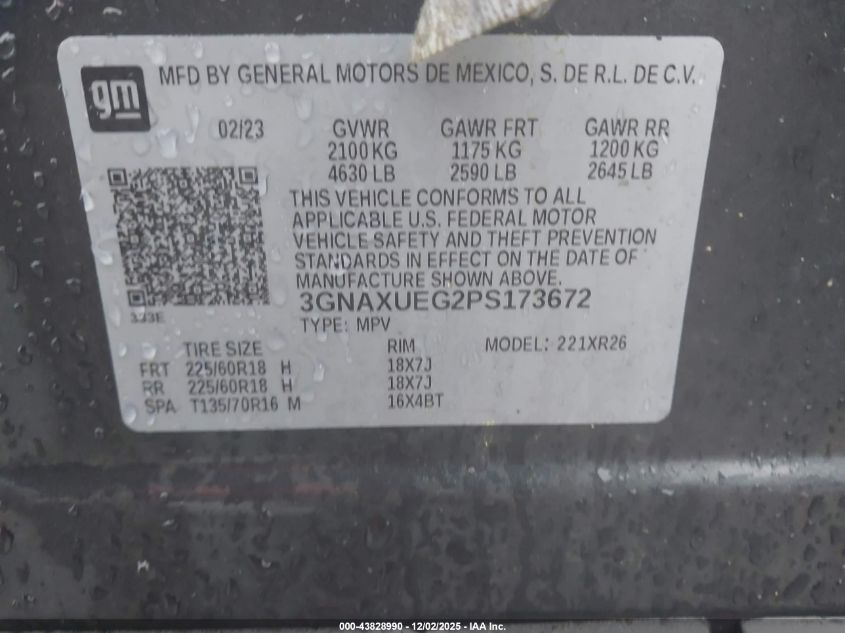 2023 CHEVROLET EQUINOX 2023 року Бензин, 1.5, Полный привод, vin - 3GNAXUEG2PS173672 из США