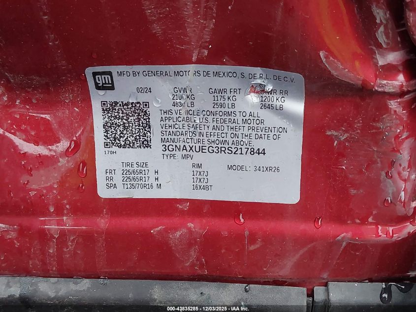 2024 CHEVROLET EQUINOX 2024 року Бензин, 1.5, Полный привод, vin - 3GNAXUEG3RS217844 из США