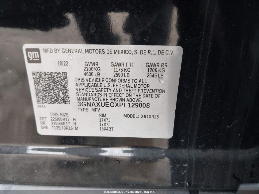 2023 CHEVROLET EQUINOX 2023 року Бензин, 1.5, Полный привод, vin - 3GNAXUEGXPL129008 из США