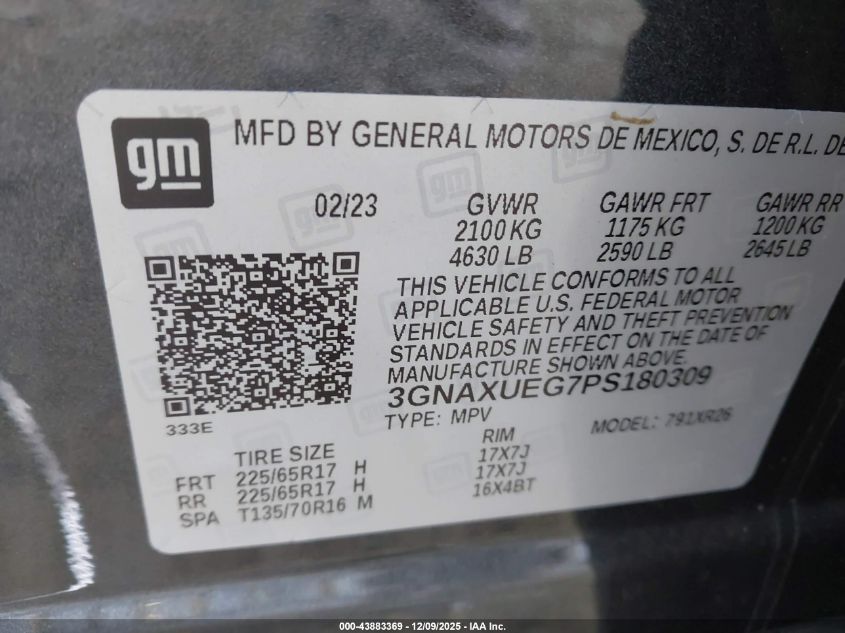 2023 CHEVROLET EQUINOX 2023 року Бензин, 1.5, Полный привод, vin - 3GNAXUEG7PS180309 из США