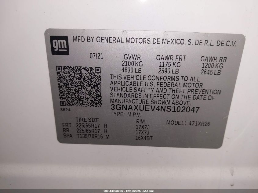 2022 CHEVROLET EQUINOX 2022 року Бензин, 1.5, Полный привод, vin - 3GNAXUEV4NS102047 из США