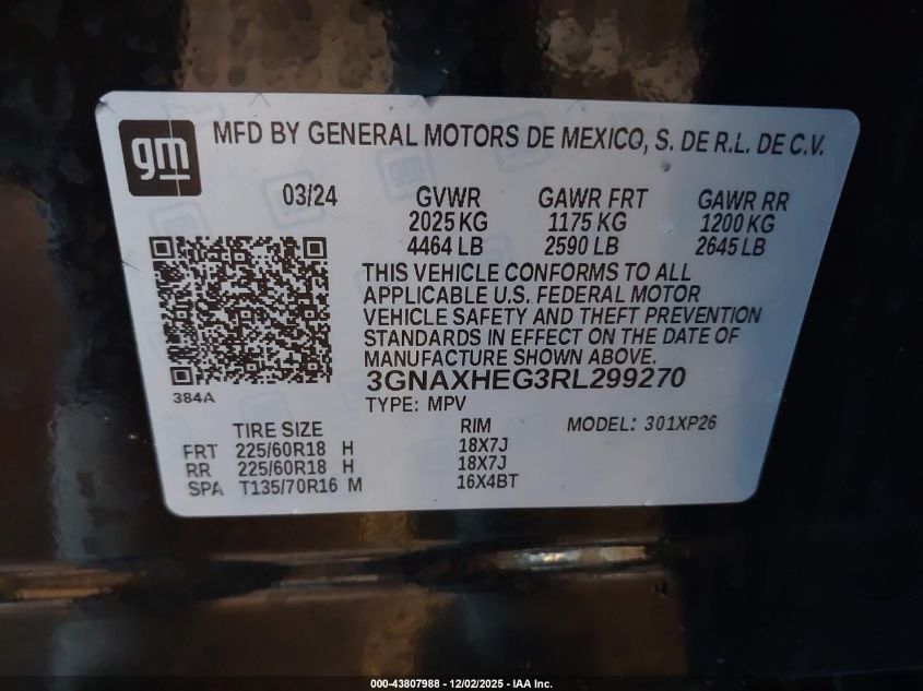 2024 CHEVROLET EQUINOX 2024 року Бензин, 1.5, Передний привод, vin - 3GNAXHEG3RL299270 из США