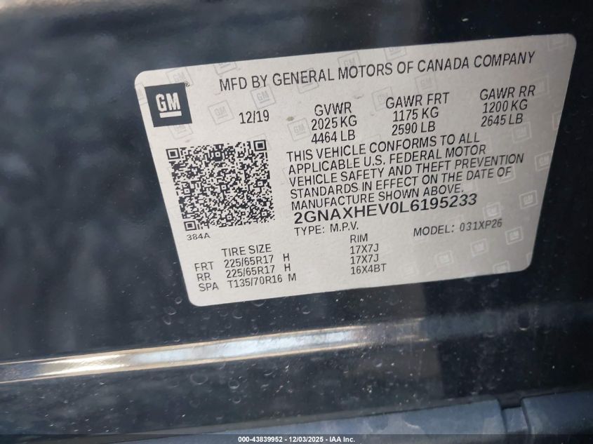 2020 CHEVROLET EQUINOX 2020 року Бензин, 1.5, Передний привод, vin - 2GNAXHEV0L6195233 из США