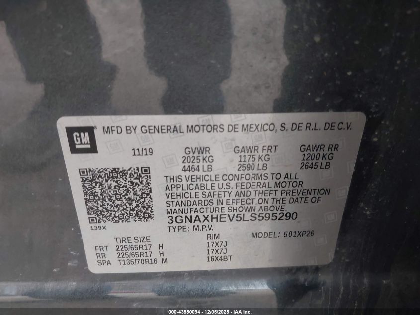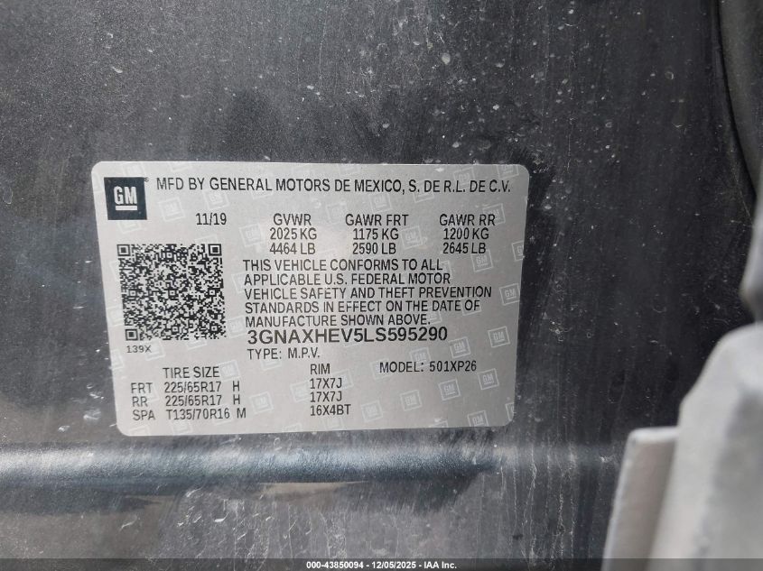 2020 CHEVROLET EQUINOX 2020 року Бензин, 1.5, Передний привод, vin - 3GNAXHEV5LS595290 из США