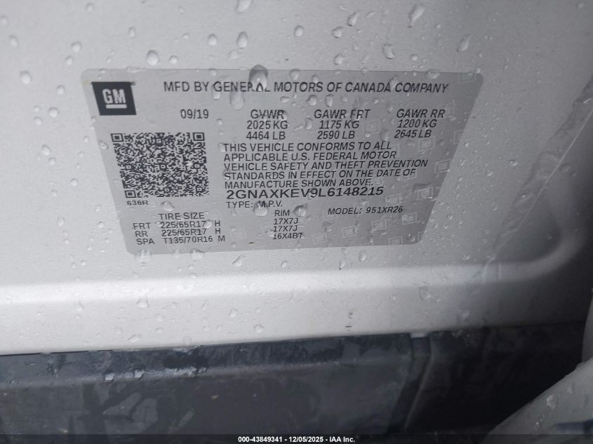 2020 CHEVROLET EQUINOX 2020 року Бензин, 1.5, Передний привод, vin - 2GNAXKEV9L6148215 из США