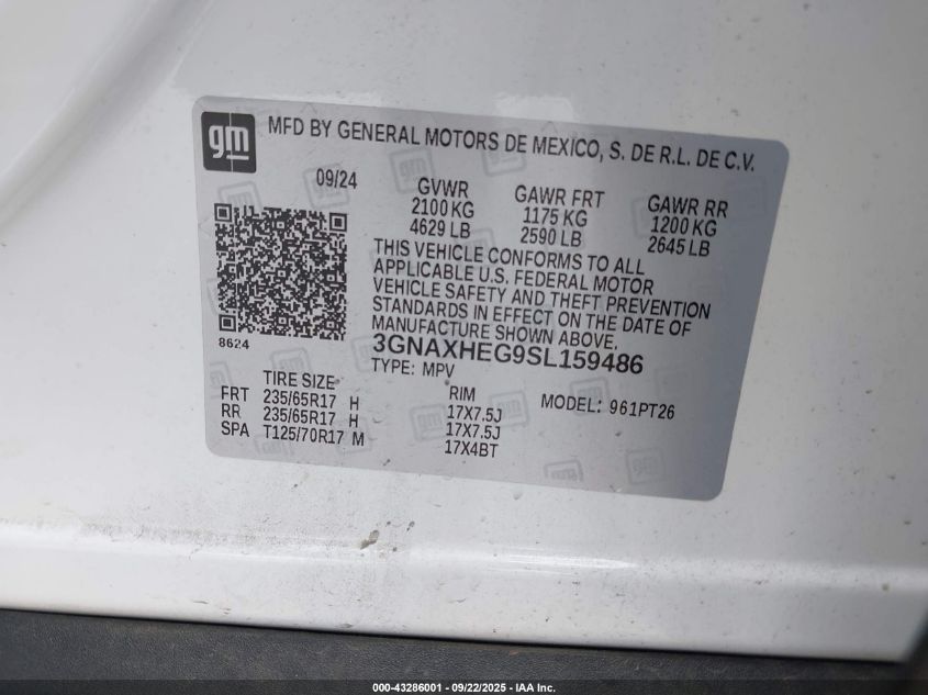 2025 CHEVROLET EQUINOX 2025 року Бензин, 1.5, Передний привод, vin - 3GNAXHEG9SL159486 из США