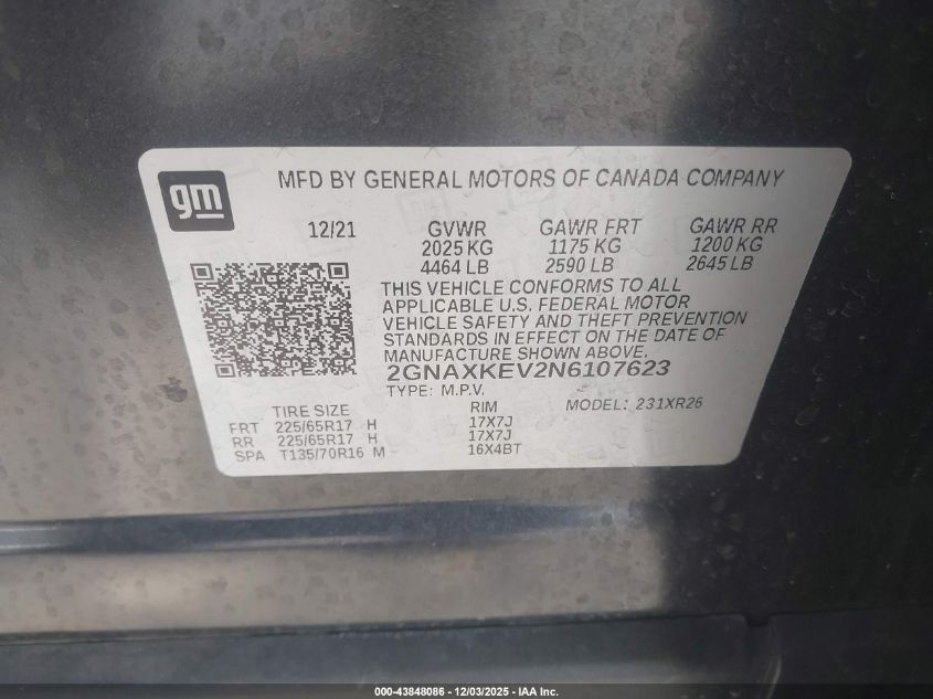 2022 CHEVROLET EQUINOX 2022 року Бензин, 1.5, Передний привод, vin - 2GNAXKEV2N6107623 из США