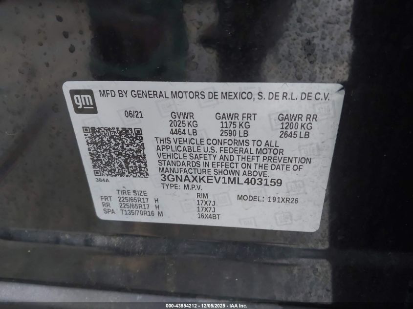 2021 CHEVROLET EQUINOX 2021 року Бензин, 1.5, Передний привод, vin - 3GNAXKEV1ML403159 из США