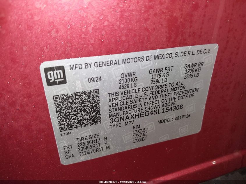 2025 CHEVROLET EQUINOX 2025 року Бензин, 1.5, Передний привод, vin - 3GNAXHEG4SL154308 из США