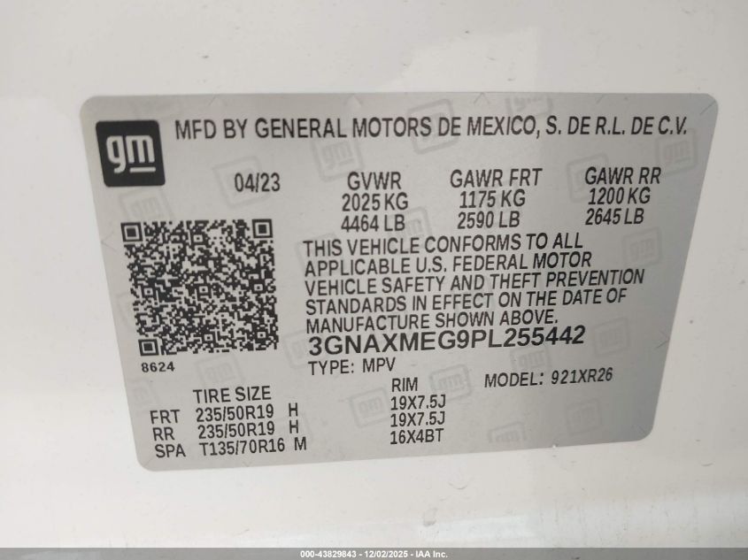 2023 CHEVROLET EQUINOX 2023 року Бензин, 1.5, Передний привод, vin - 3GNAXMEG9PL255442 из США