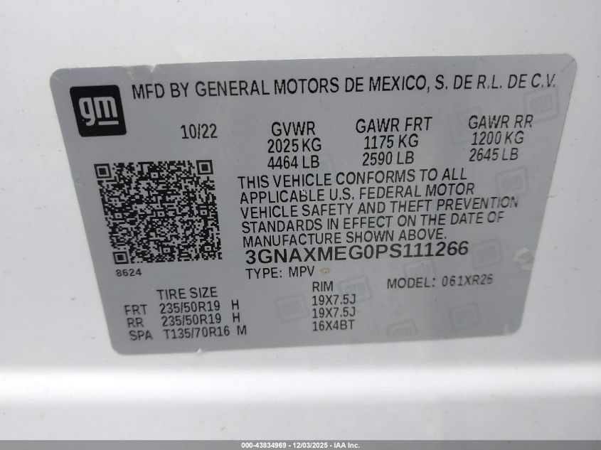 2023 CHEVROLET EQUINOX 2023 року Бензин, 1.5, Передний привод, vin - 3GNAXMEG0PS111266 из США