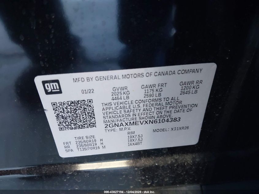 2022 CHEVROLET EQUINOX 2022 року Бензин, 1.5, Передний привод, vin - 2GNAXMEVXN6104383 из США