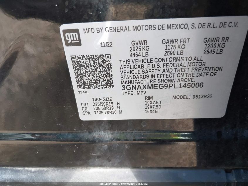 2023 CHEVROLET EQUINOX 2023 року Бензин, 1.5, Передний привод, vin - 3GNAXMEG9PL145006 из США