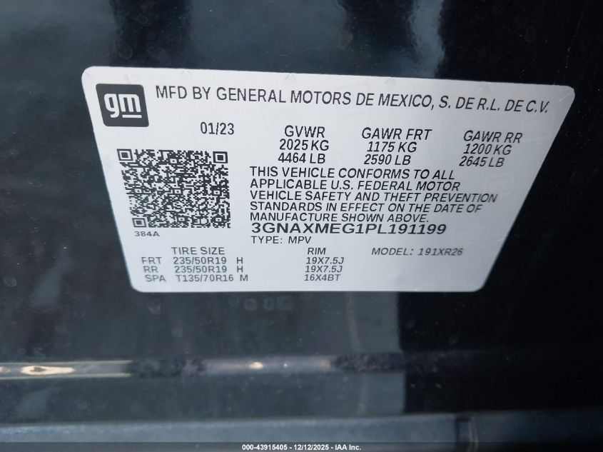 2023 CHEVROLET EQUINOX 2023 року Бензин, 1.5, Передний привод, vin - 3GNAXMEG1PL191199 из США