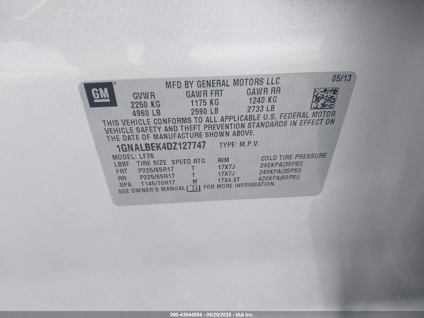 2013 CHEVROLET EQUINOX 2013 року Бензин, 2.4, Передний привод, vin - 1GNALBEK4DZ127747 из США