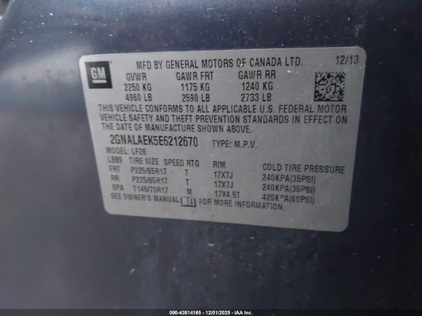 2014 CHEVROLET EQUINOX 2014 року Бензин, 2.4, Передний привод, vin - 2GNALAEK5E6212670 из США