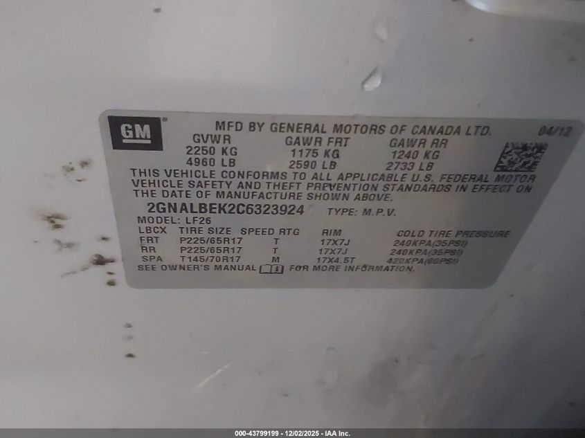 Цвет СеребряныйЦилиндры 4Привод Передний приводVIN 2GNALBEK2C6323924Состояние СтационарноПовреждения Передняя левая AutoRIA