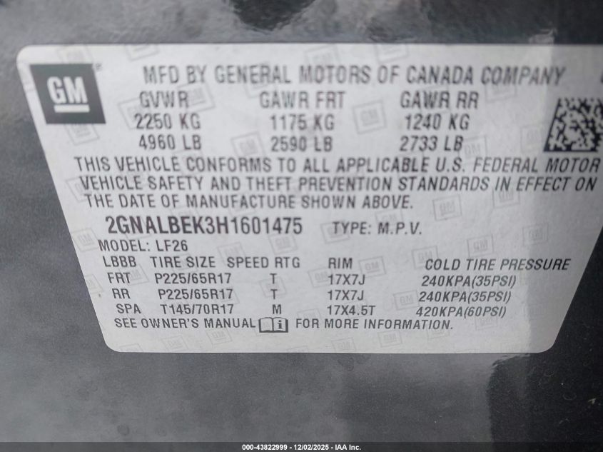 2017 CHEVROLET EQUINOX 2017 року Бензин, 2.4, Передний привод, vin - 2GNALBEK3H1601475 из США