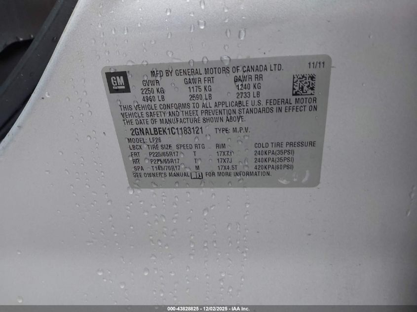 2012 CHEVROLET EQUINOX 2012 року Бензин, 2.4, Передний привод, vin - 2GNALBEK1C1183121 из США