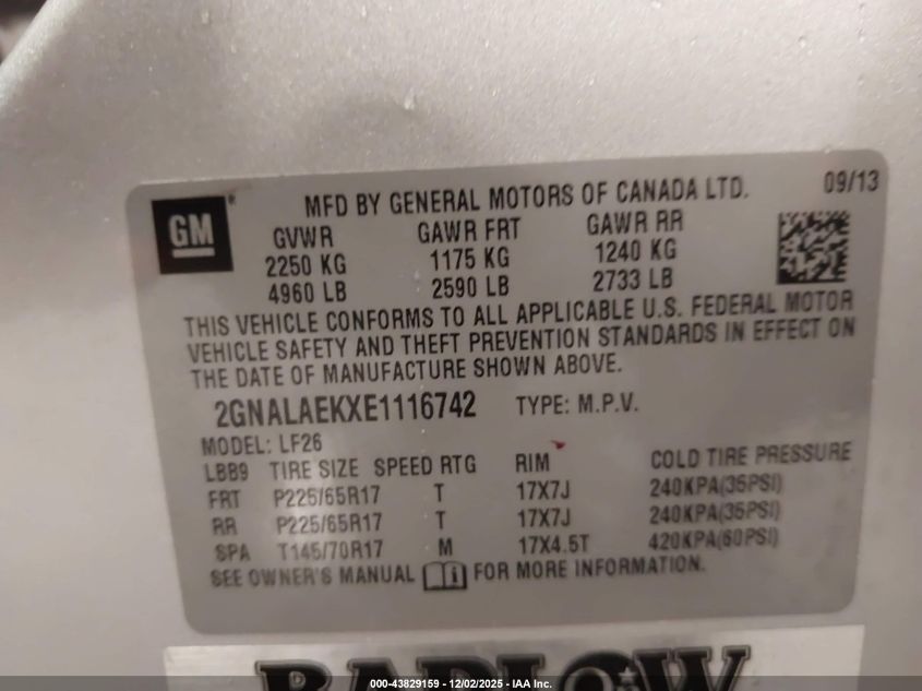 2014 CHEVROLET EQUINOX 2014 року Бензин, 2.4, Передний привод, vin - 2GNALAEKXE1116742 из США